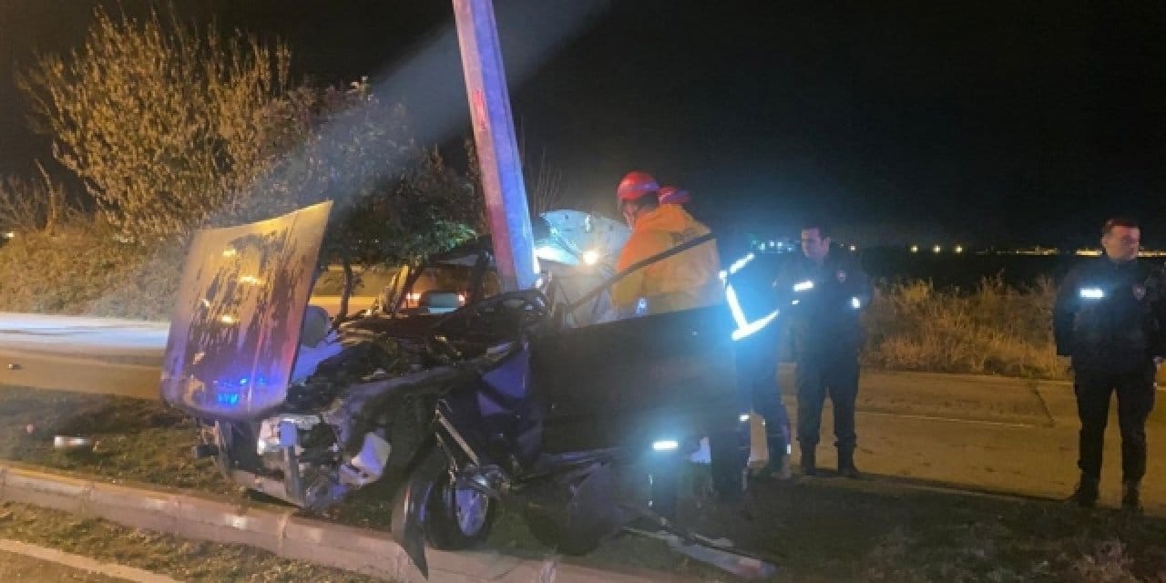 Kontrolden çıkan araç, yoldan çıkıp refüjde bulunan bir aydınlatma direğine şiddetle çarptı. Çarpışmanın tesiriyle araba ikiye bölündü. Araçtaki şoför Seval E. ve yolcu Çağatay D. enkaz içinde sıkıştı.