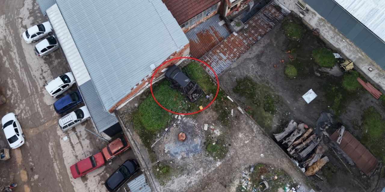 Mahmudiye Mahallesi Bozkurt Sokak’ta traktör tamirciliği yapan usta, çatıda hurda araba olduğunu fark edince durumu iş yeri sahibine bildirdi. Mülk sahibinin ismine süreçleri yürüten Berat Ertopuz, tamir için dükkana gelerek çatıyı denetim etmek istedi.