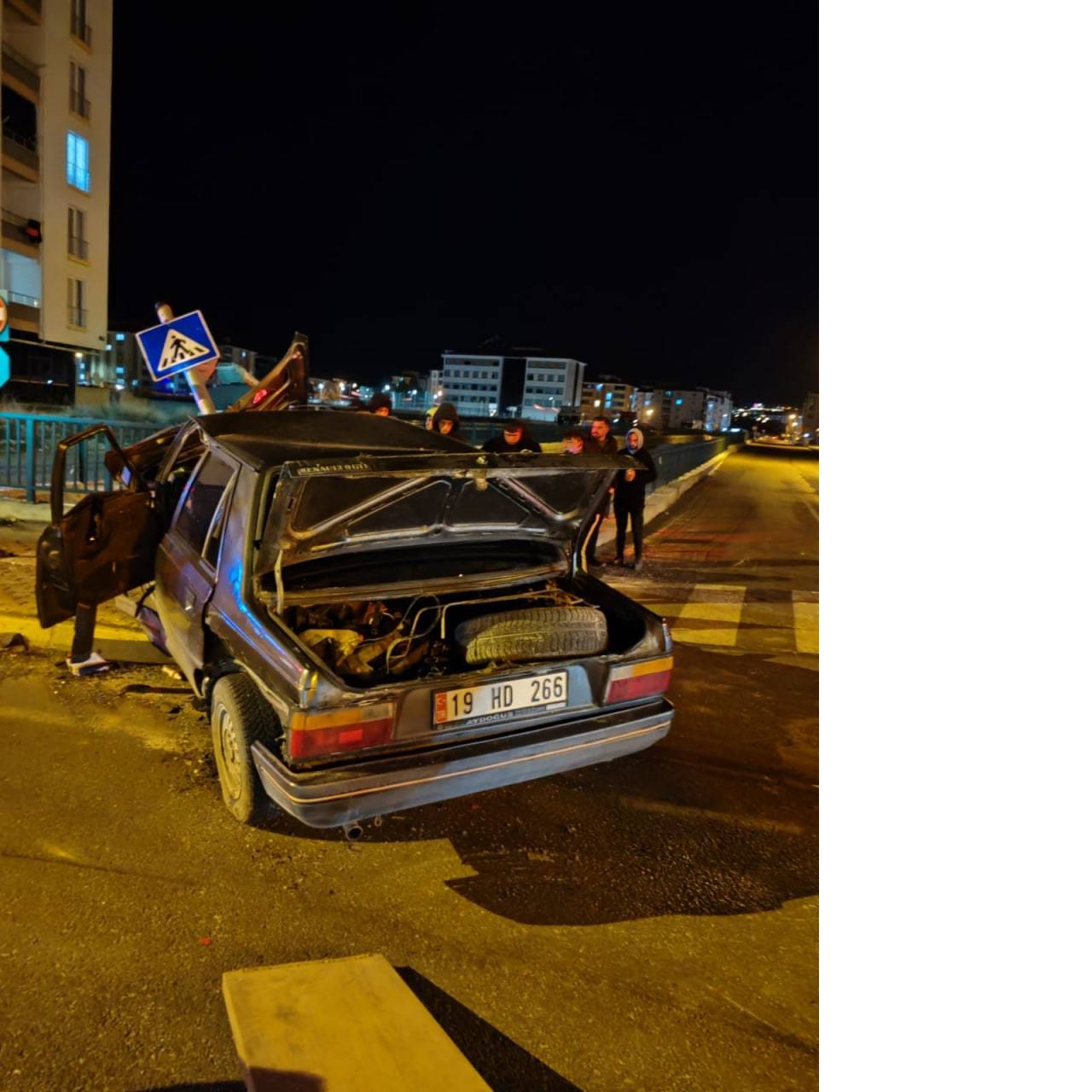 Kaza nedeniyle arabalar kullanılamaz hale gelirken yol kenarındaki trafik levhaları da ziyan gördü.