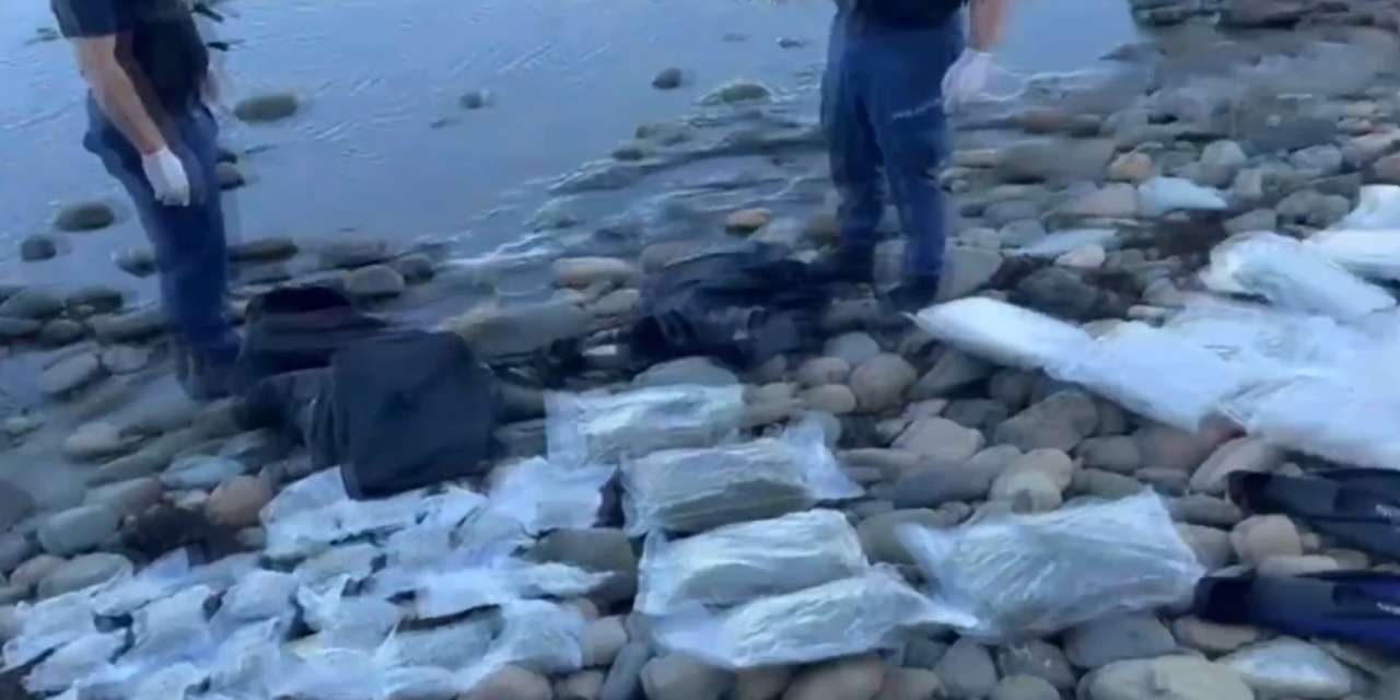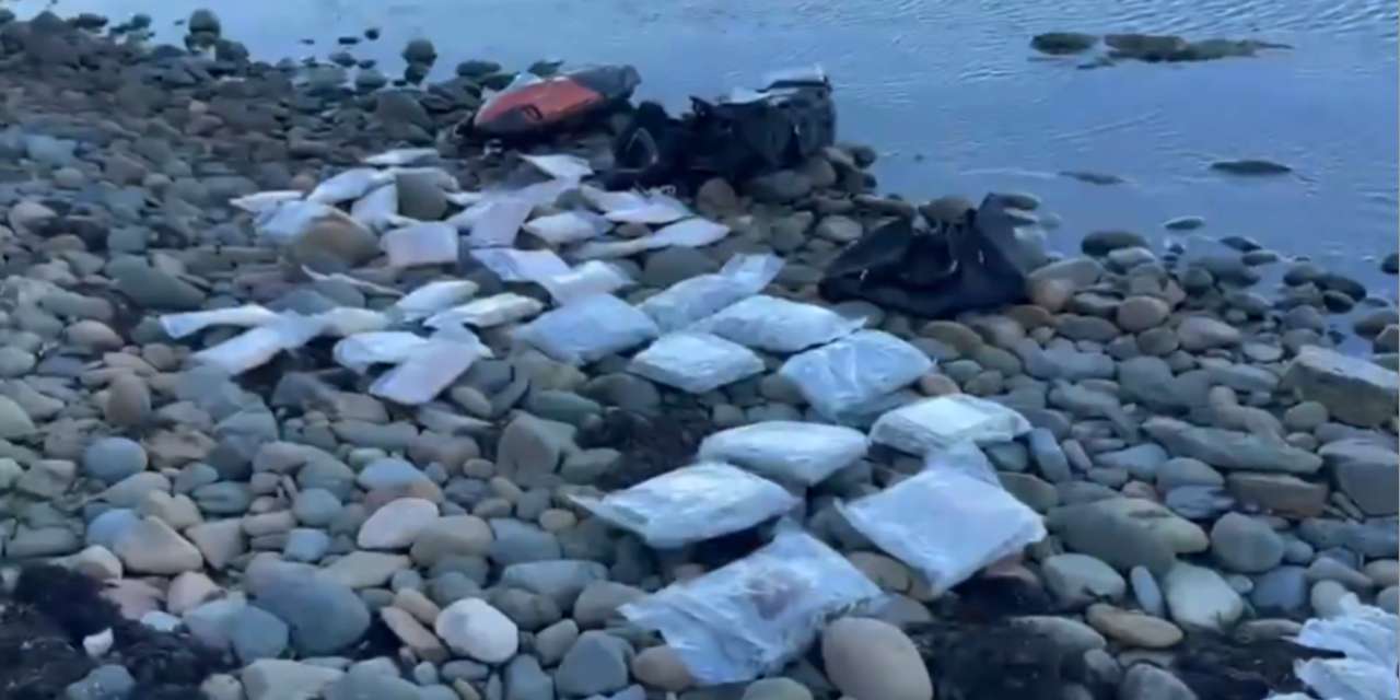 Sahil güvenlik gruplarının yakaladıkları 6 çanta dolusu toplam 114 kilo uyuşturucuyu kıyıya çıkarması ile ortaya çıkan imaj şaşkınlık yarattı.