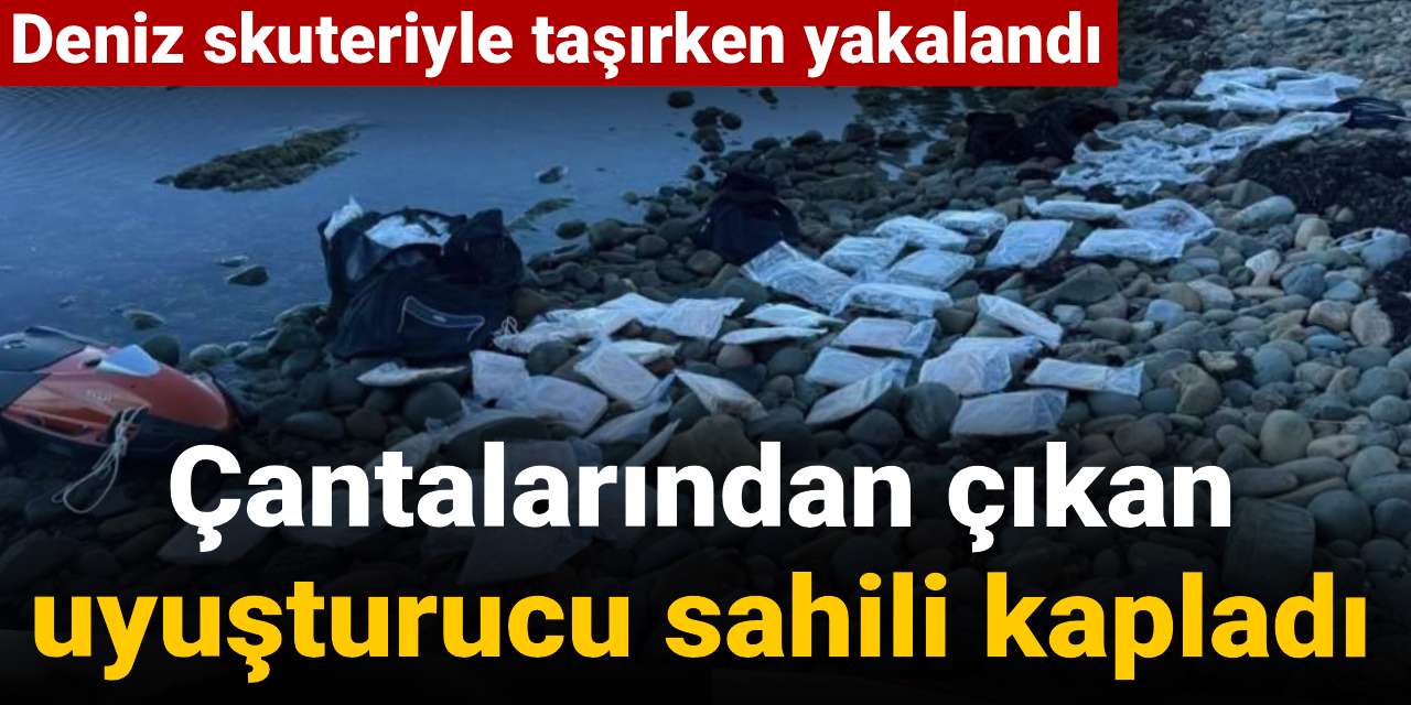 Yabancı asıllı olduğu belirlenen şahsın deniz skuteri ile 6 çanta dolusu uyuşturucu taşıdığı belirlendi. Gruplar uyuşturucu nakliyeciliği yapan şahsı gözaltına alırken çantadan çıkanlar şoke etti.