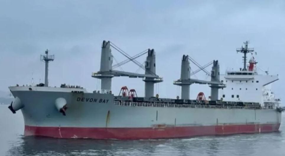 2013 yılında inşa edilen ve 56.095 DWT taşıma kapasitesine sahip Singapur bayraklı Devon Bay gemisi, Japon denizcilik firması Kawasaki Kisen Kaisha (K Line)’nın yan kuruluşu K Line Pte Ltd’ye aitti. Gemi, 22 Ocak gecesi Filipinler’in güneyinde yer alan Gutalac Limanı’ndan hareket ederek Çin’in Yangjiang kentine hakikat yaklaşık 55 bin ton nikel cevheri taşırken yan yatmış ve kısa müddet içinde alabora oldu.