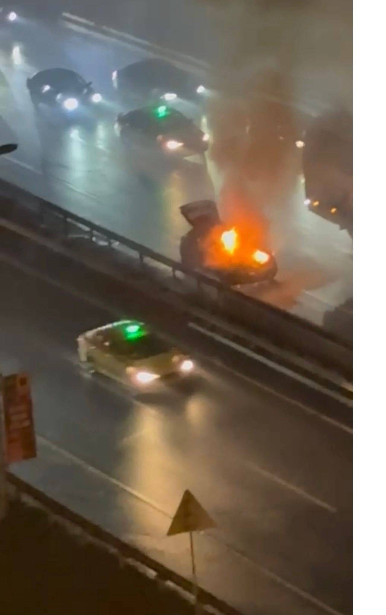 Motor kısmından çıkan dumanları fark eden şoför, durumu itfaiyeye haber verdi ve arabası emniyet şeridine çekerek aracından indi.