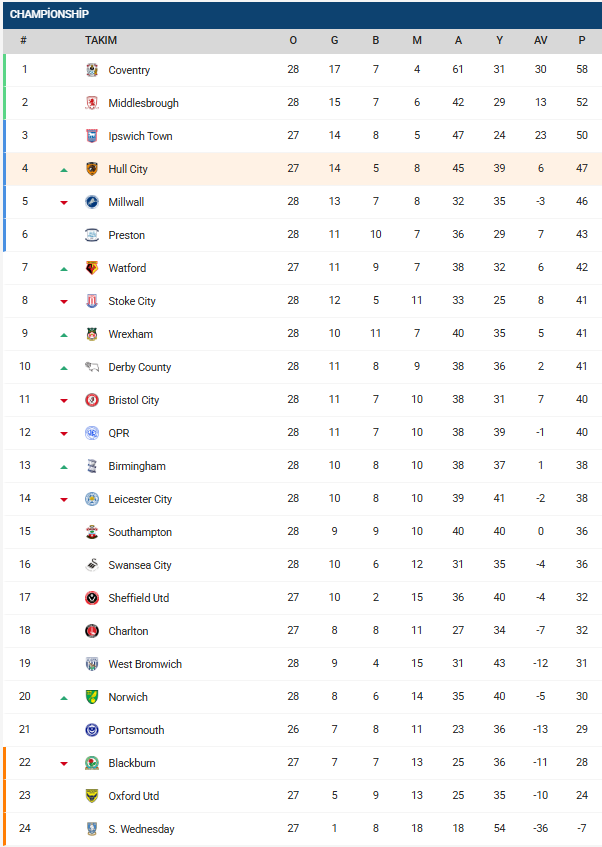 Bu sonuçla Hull City puanını 47’ye yükseltti ve ligde 4. sıraya çıktı. İkinci sıradaki Ipswich Town ile ortasındaki fark ise yalnızca 3 puana indi. Bu tablo, Hull City’nin Premier Lig maksadında ne kadar argümanlı olduğunu bir kere daha ortaya koydu. Preston ise 43 puanla 7. sırada kaldı.
