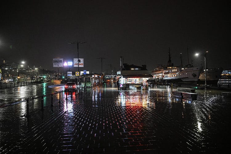 Avrupa Yakası’ndan başlayarak tüm kentte tesirini gösteren yağmur daha sonra yerini kuvvetli yağışa bıraktı. Yağmurla birlikte çakan şimşekler gökyüzünü aydınlatırken, gök gürültüsü de birtakım ilçelerde duyuldu.