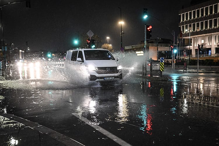 Yollarda oluşan su birikintileri nedeniyle şoförler araçlarını yavaş ve dikkatli biçimde kullandı.