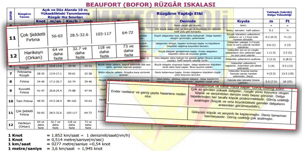 Saatlik atılımlarla sertleşecek lodos, çıkacağı süratle harikeyn yani kasırga hududuna dayanmış olacak. Meteoroloji’nin yayımladığı bofor ölçeğine nazaran; kasırga öncesi rüzgar şiddeti 103 ila 117 kilometre olarak görülüyor.