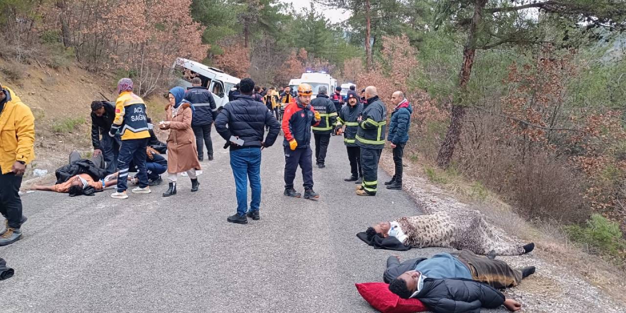 Karabük’te, Düzçam köyü mevkisinde saat 16.30 sıralarında meydana gelen kazada, hafta sonu tatili için gittikleri kayak merkezinden dönen Senegalli üniversite öğrencilerini taşıyan minibüs, denetimden çıkarak yaklaşık 5 metre yükseklikten alt yola uçtu.