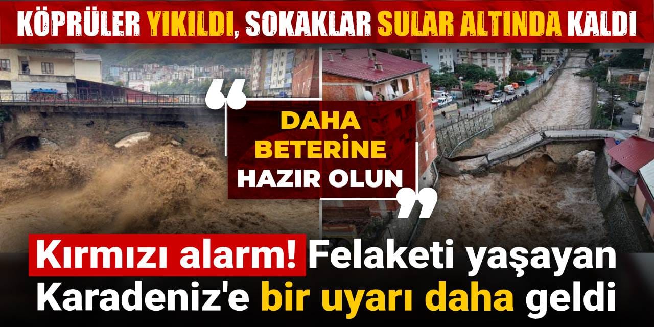 Meteoroloji Genel Müdürlüğü, yayınladığı yeni ihtarda, Doğu Karadeniz’de Giresun, Trabzon, Rize ve Artvin vilayetlerinde felakete yol açan şiddetli yağışların bu akşam yarın öğlen saatlerine (21 Eylül saat 13.00) kadar şiddetini artırarak devam edeceğini duyurdu.