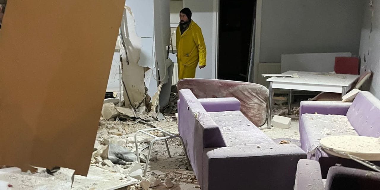 Yurdun mutfak kısmında şimdi bilinmeyen nedenle meydana gelen patlama sonrası büyük hasar oluştu.