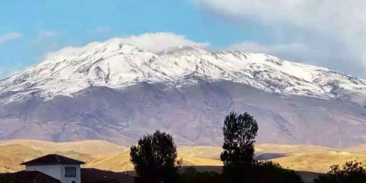 Bitlis’in Adilcevaz ilçesinde bulunan 4058 metre yüksekliğindeki Süphan Dağı, yağan karla beyaza büründü.