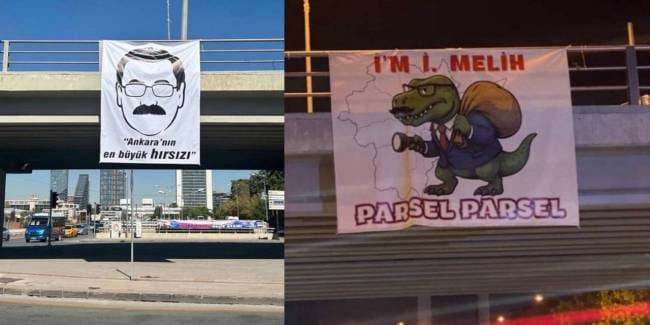 Bu gelişmenin akabinde Ankara’daki bir üst geçide, Melih Gökçek’i çağrıştıran bir görselin yer aldığı pankart asıldı.