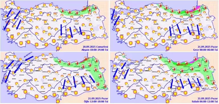 Meteoroloji Genel Müdürlüğü’nden gelen son değerlendirmelere göre; gök gürültülü sağanak yağış nedeniyle yarın (21 Eylül 2025) öğle saatlerine kadar;