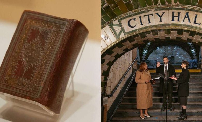 New York'un ilk Müslüman Belediye Başkanı Zohran Mamdani, göreve başlarken, Eski City Hall Metro İstasyonu’nda düzenlenen merasimde Kuran'a el basarak…