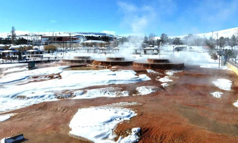 Sivas Valiliği tarafından Pamukkale travertenleri model alınarak Sıcak Çermik Termal Turizm Bölgesi'nde kurulan Altınkale projesi, karpostallık manzarasıyla görenleri kendine hayran…