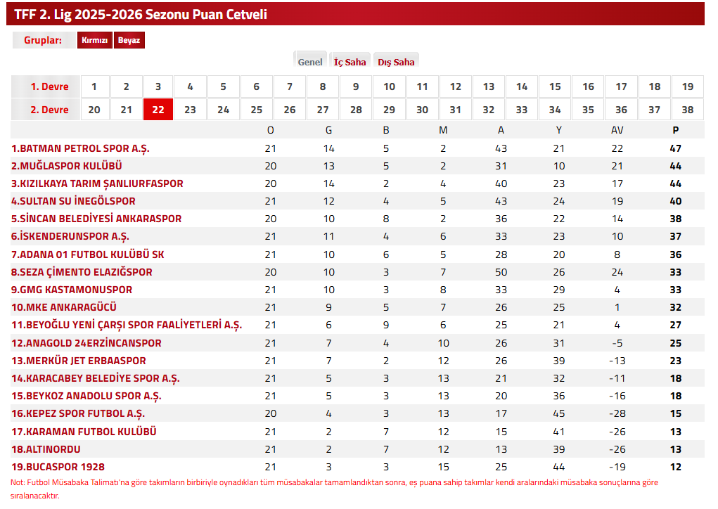 PUAN DURUMU: