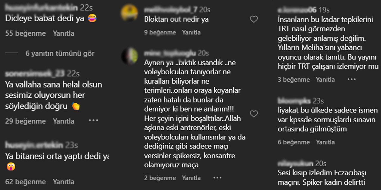 Sosyal medyada voleybol yorumculuğu yapan bir yayıncı, TRT spikerlerine reaksiyon göstererek maçların spiker olmadan yayınlanmasını talep etti.
