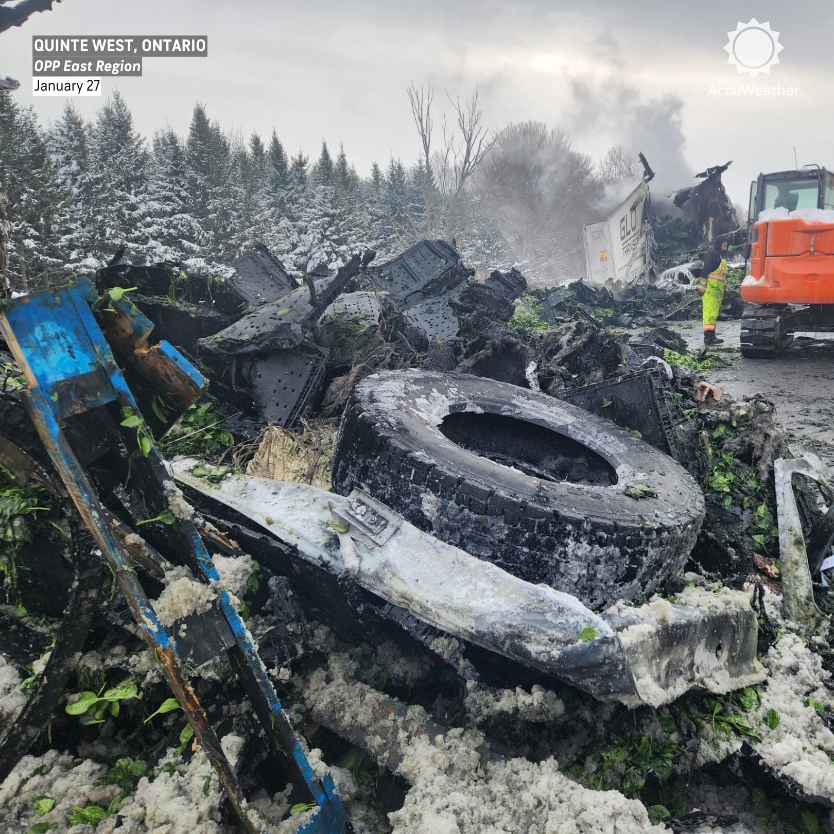 Soyadının yayınlanmasını istemeyen Işık A., kaza anını anlattı. Sabah saat 08.00 sularında Glen Miller Yolu’nun bir kilometre doğusunda, göz gözü görmeyen tipi altında gerçekleşen kazada, insanların güvenliğini sağlamak için süratle harekete geçtiğini belirtti. Olay yerine Quinte West İtfaiyesi ve Ontario Eyalet Polisi müdahale ederken, otoyol saatlerce trafiğe kapandı ve kilometrelerce araç kuyruğu oluştu.